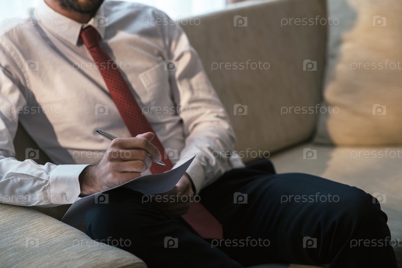 Бизнесмен пишет в блокноте