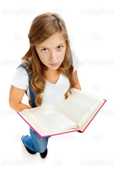 Девушка читает книгу, изолированная на белом фоне