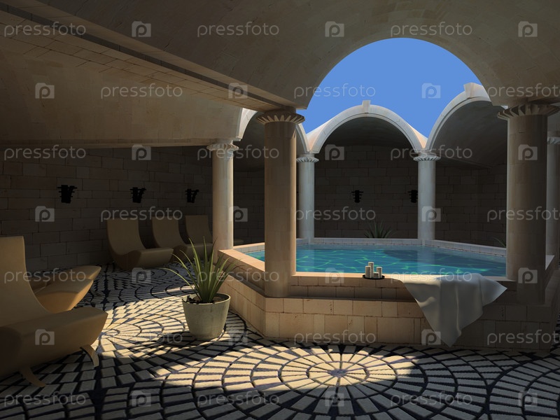 Интерьер роскошного спа-отеля (3D визуализация)