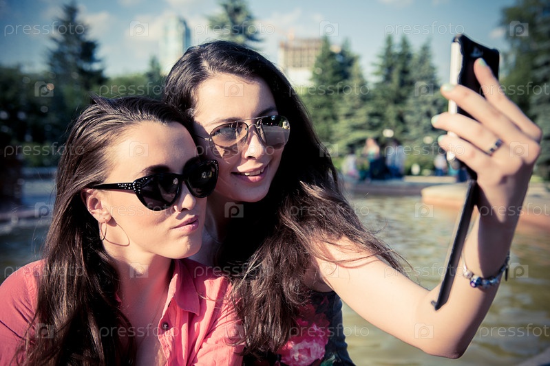 Две молодые женщины делают селфи