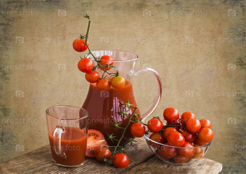 Кувшин с томатным соком и помидоры