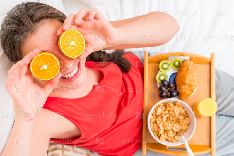 Девушка завтракает