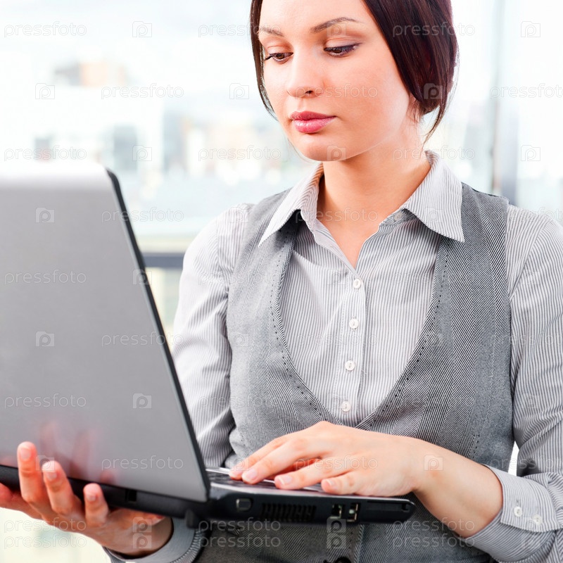 Деловая леди с ноутбуком в офисе