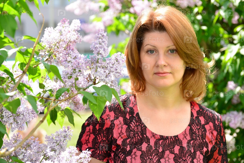 Женщина возле сирени