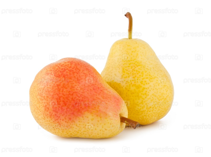 Две спелые груши на белом фоне