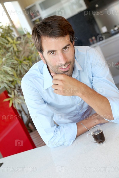 Мужчина пьет кофе