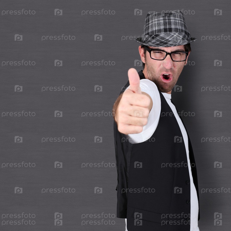 Забавный парень показывает палец вверх