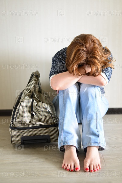 Грустная женщина с чемоданом