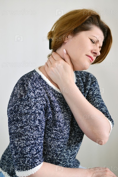 Взрослая женщина с болью в шее