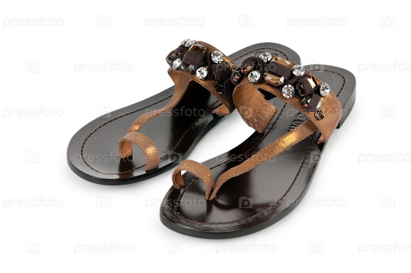 Женские сандалии на белом фоне