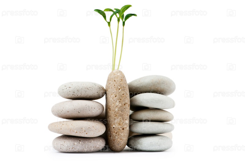 Зеленые ростки на морских камушках