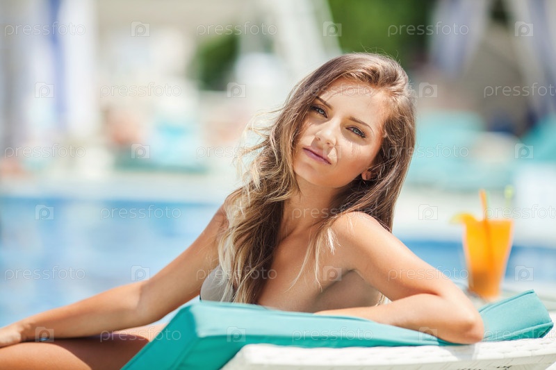 Восхитительная девушка у басеина с коктейлем
