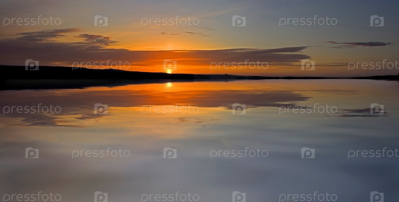 Красивый закат на фоне озера