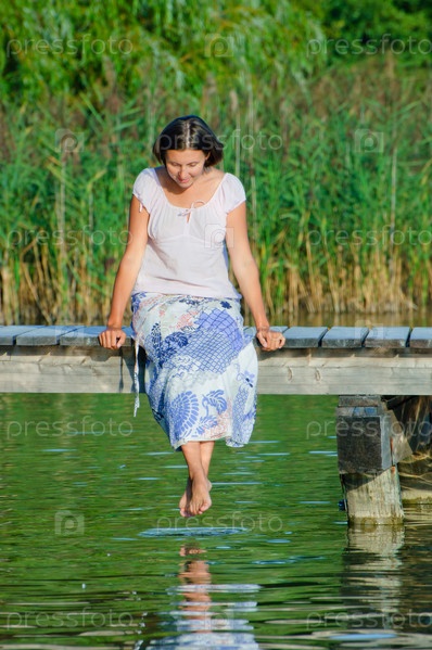 Женщина сидит на пирсе