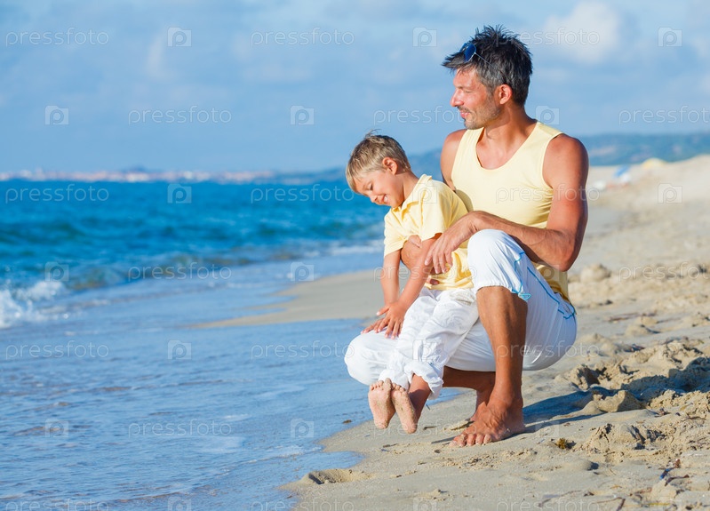 Отец и сын на пляже