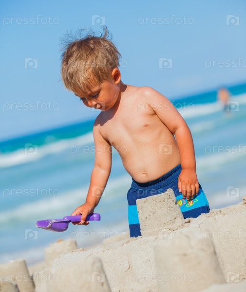 Мальчик играет на пляже
