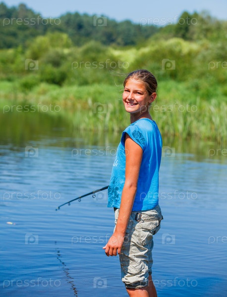 Девочка рыбалка на реке