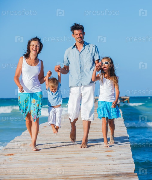 Семья на деревянном причале