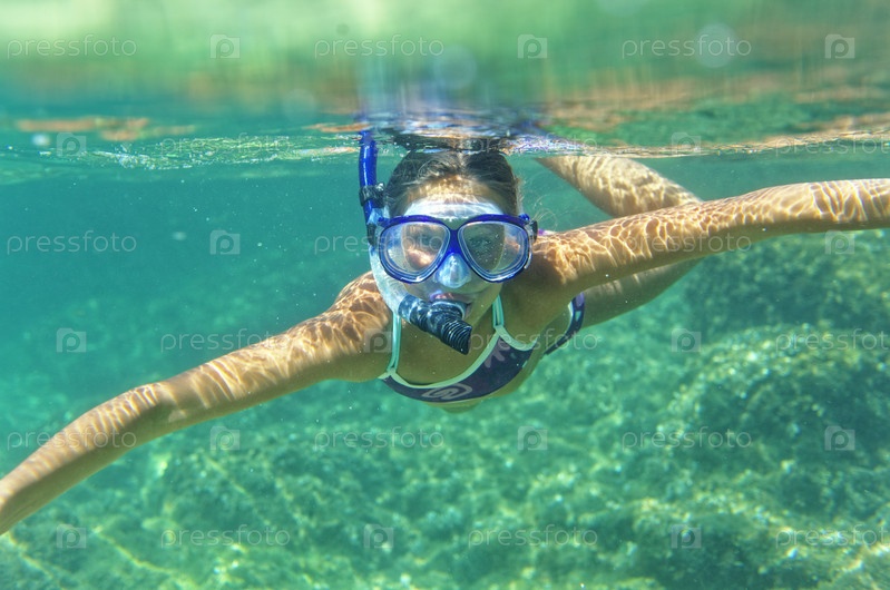 Девушка занимается подводным плаванем