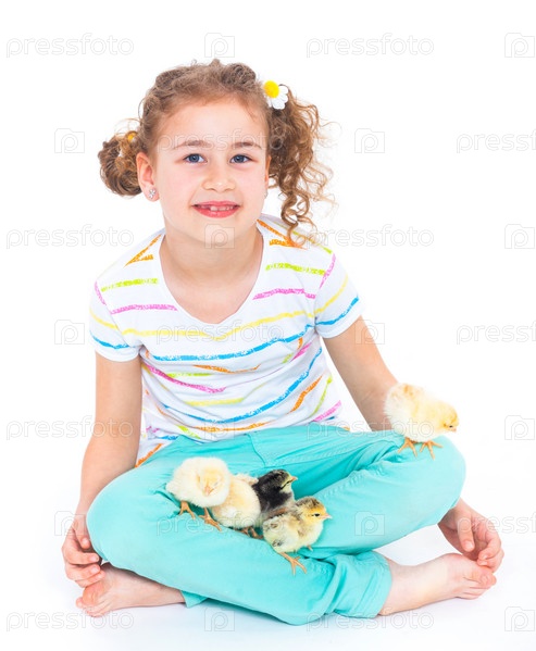 Девочка держит цыпленка