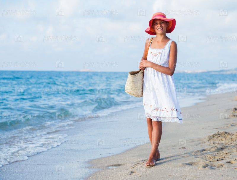 Девушка прогулки на пляже