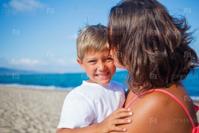 Мать и сын на пляже
