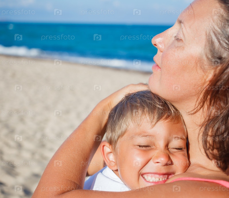 Мать и сын на пляже