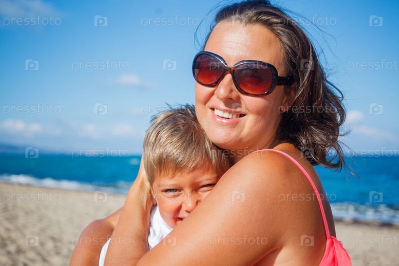 Мать и сын на пляже