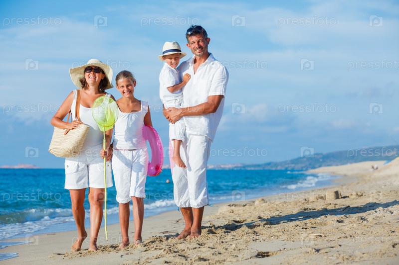 Семья на тропическом пляже