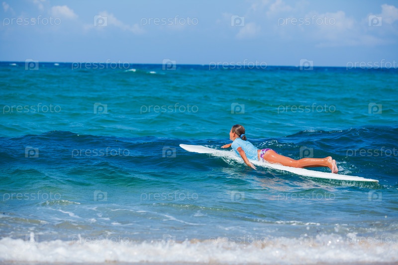 Девочка-подросток плывет на серфе