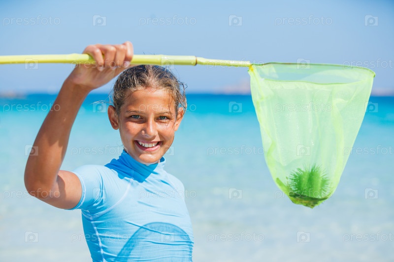 Девушка играет в море