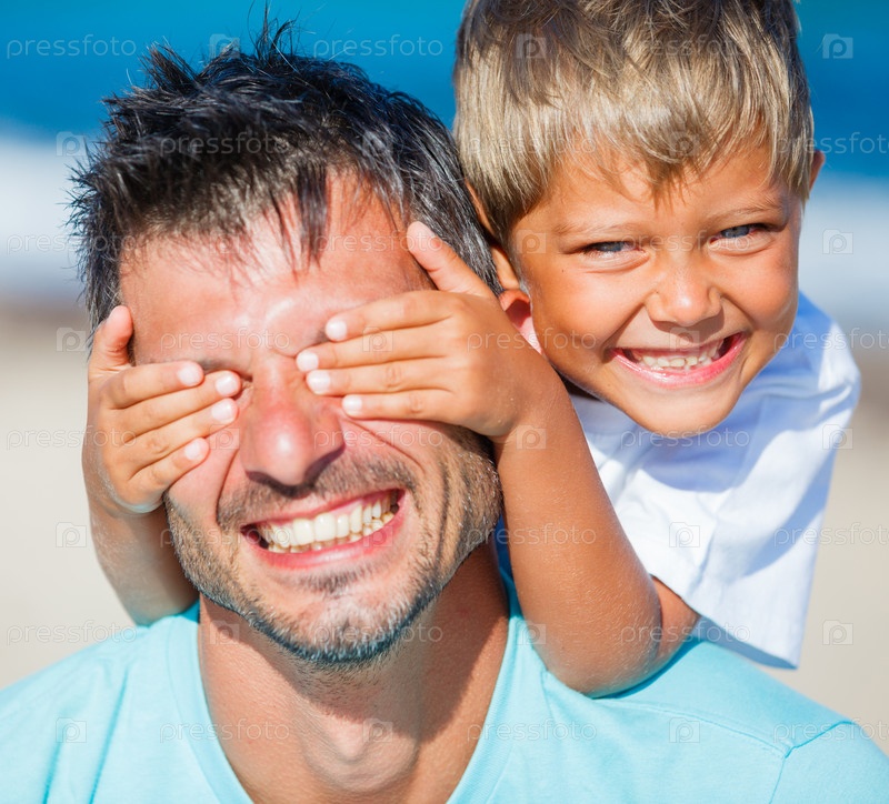 Мальчик с отцом, играя на пляже