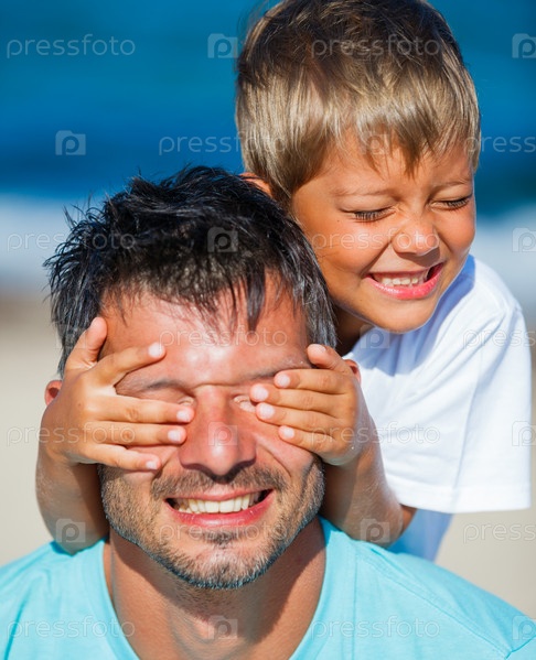Мальчик с отцом, играя на пляже