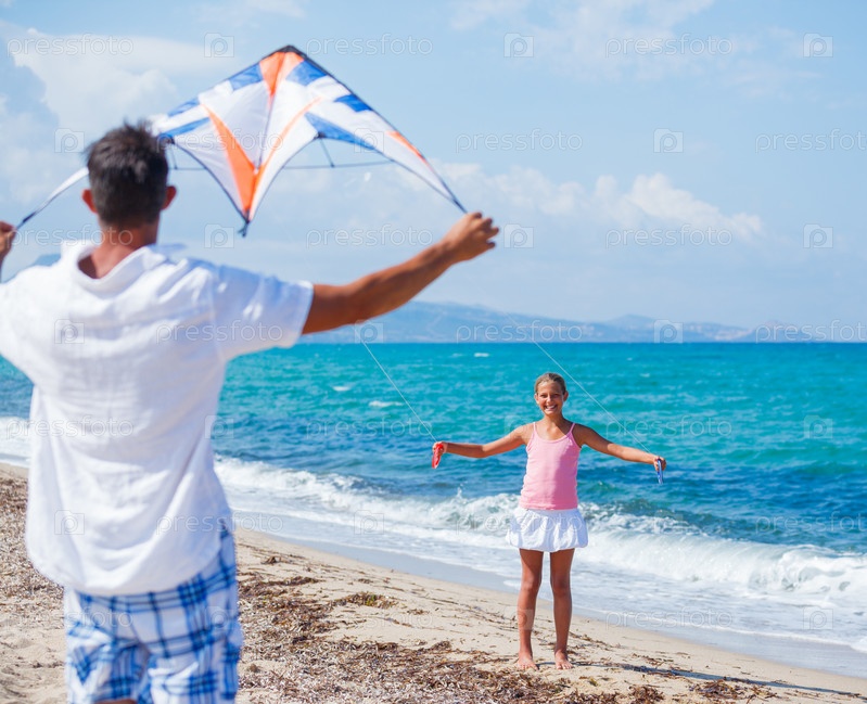 Девочка с отцом на пляже