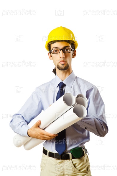 Молодой инженер с чертежами