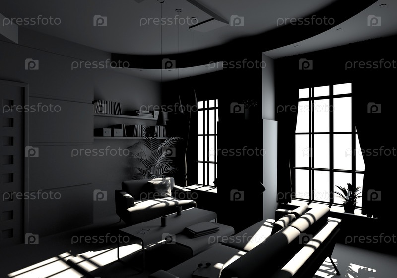 Современный интерьер гостиной в стиле BW (3D визуализация)