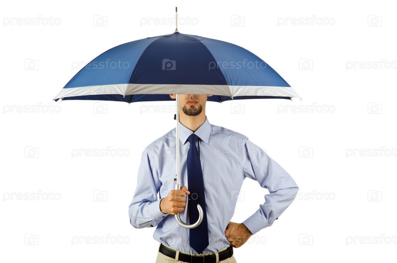 Бизнесмен с зонтиком в офисе