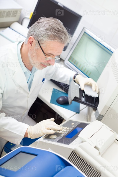 Опытный ученый проводит анализы в лаборатории