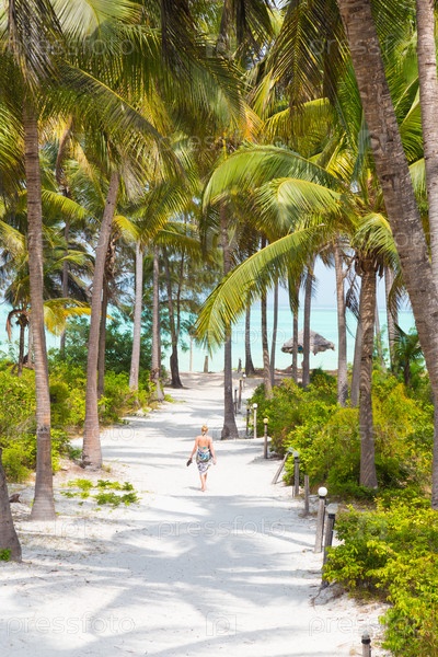 Женщина, ходить на пляже, Занзибар