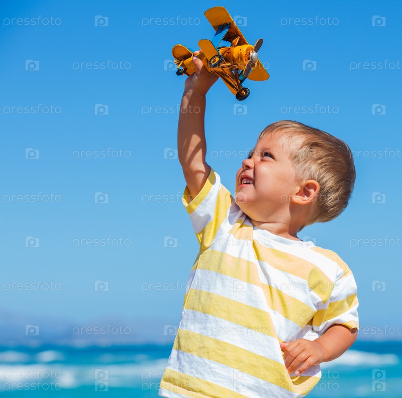 Мальчик играет с самолетом