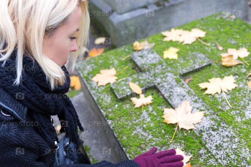 Женщина посещает могилу