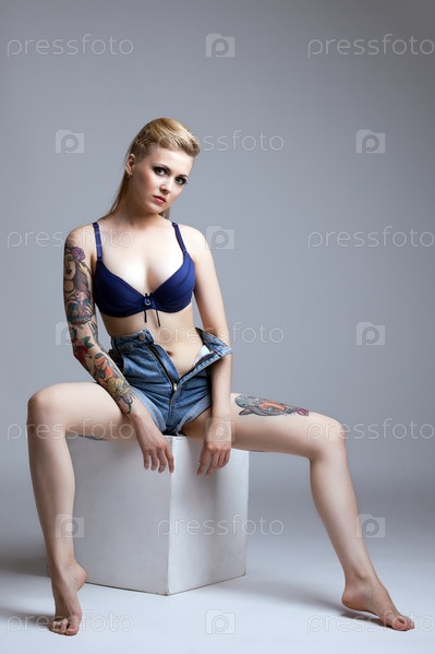Студийная съемка модели с татуировками
