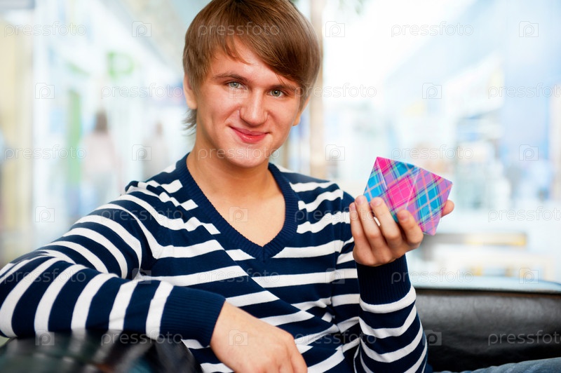 Молодой человек с подарком ждет подругу на свидание