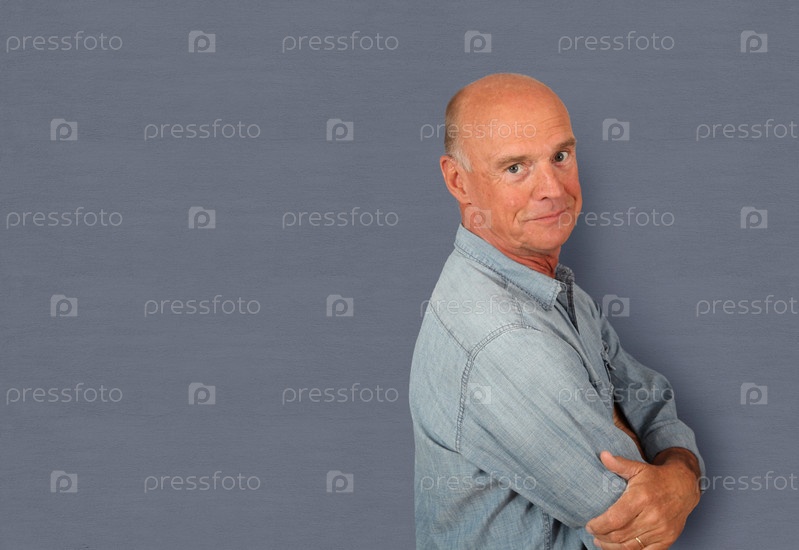 Пожилой мужчина на сером фоне