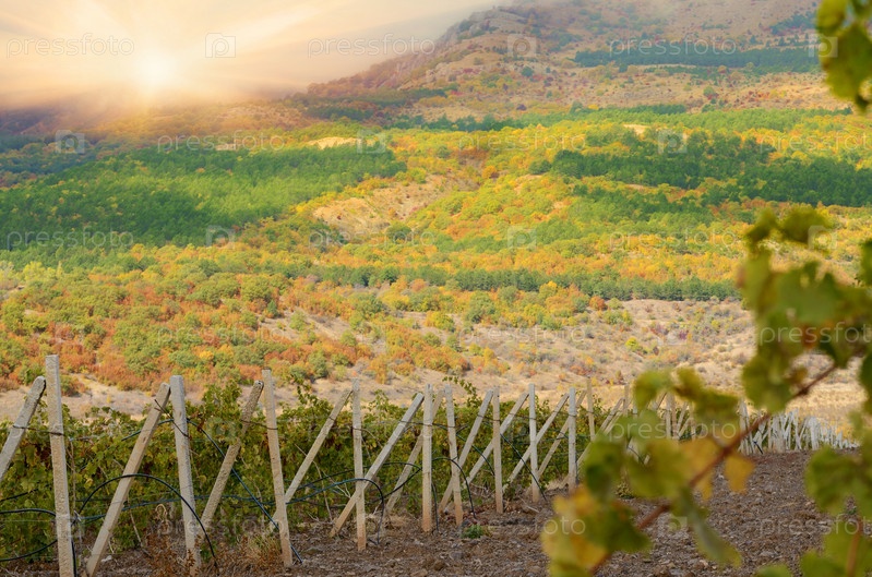 Закат над Виноградник в осенний сезон где-то в Крым Украина