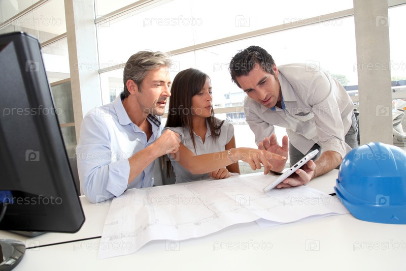 Команда архитекторов, работающих в офисе