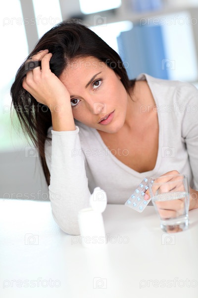 Женщина принимает таблетки