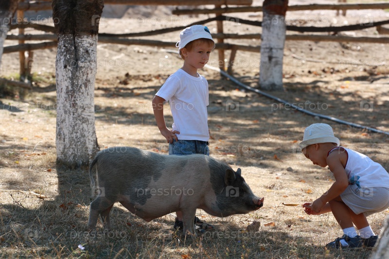 Дети и поросенок