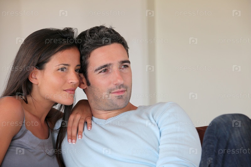 Пара расслабляется на диване