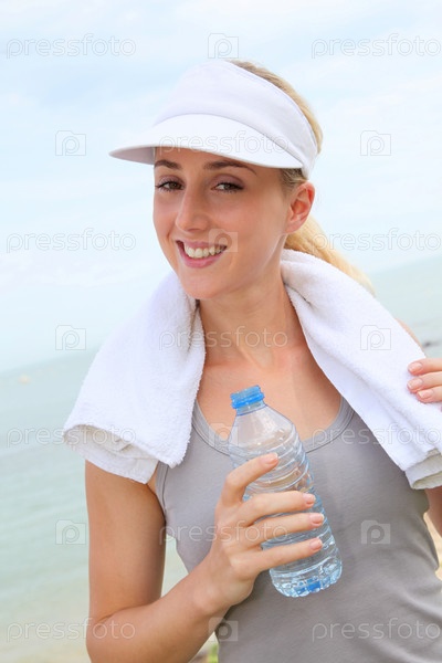 Спортивная женщина с бутылкой воды